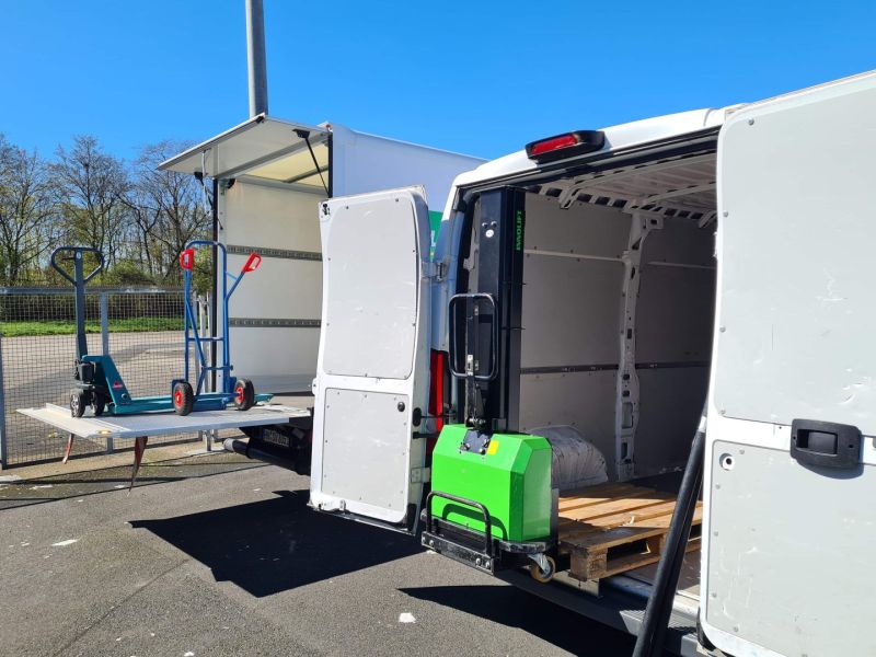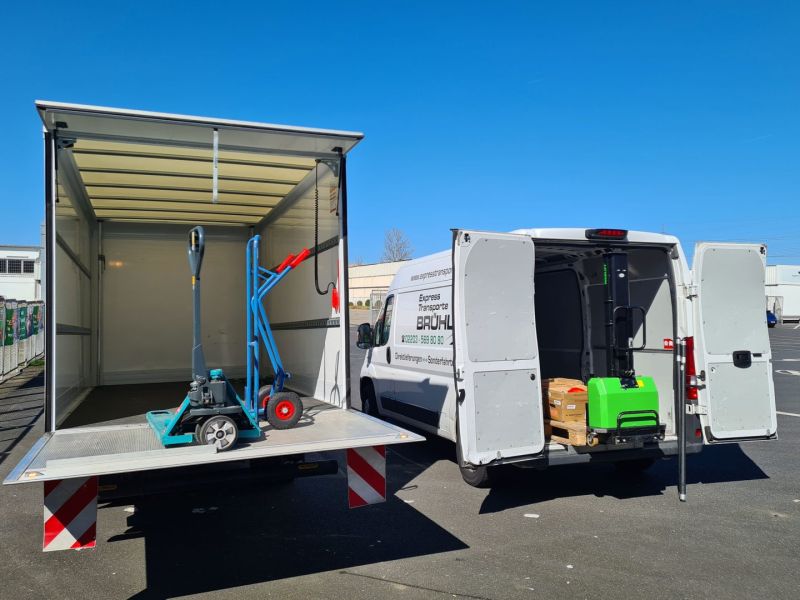 Wir verfügen über Mitnahmegabelstapler, welche uns autark bis zu 500 Kg pro Packstück be- und entladen lassen, sowie Fahrzeuge mit Kofferaufbau, Ladebordwand und Handhubwagen (Platz für 8 Paletten). Wenn Sie keinen Stapler haben, kein Problem wir haben einen dabei!